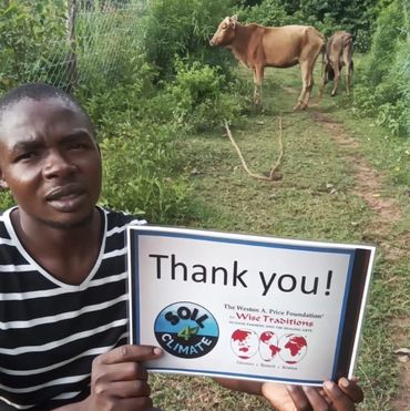 Soil4Climate is proud to stand with agroforestry and silvopasture hero, Geoffrey Ouma, of the Mabinju Power House Youth Group in Western Kenya. Mabinju Power House provides agroforestry and silvopasture training and support for up to 50 homes of mostly Luo people. Soil4Climate support has helped with the purchase of a dairy cow and agroforestry supplies. The dairy cow is now producing 4 liters of milk per day. Supplies have included planting bags and watering cans.